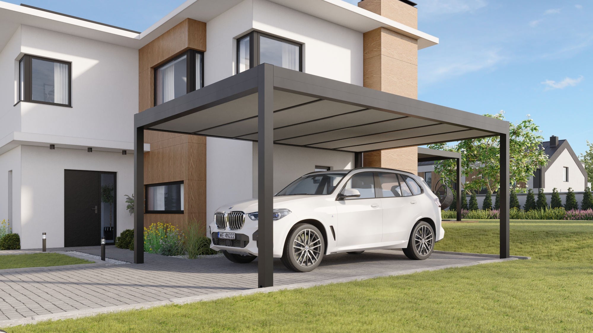 Carport är en modern och stilren lösning för att skydda dina fordon från sol, regn, vind och snö. Med sin robusta, fasta konstruktion och minimalistiska design smälter den enkelt in i olika miljöer, samtidigt som den erbjuder pålitligt skydd året runt.