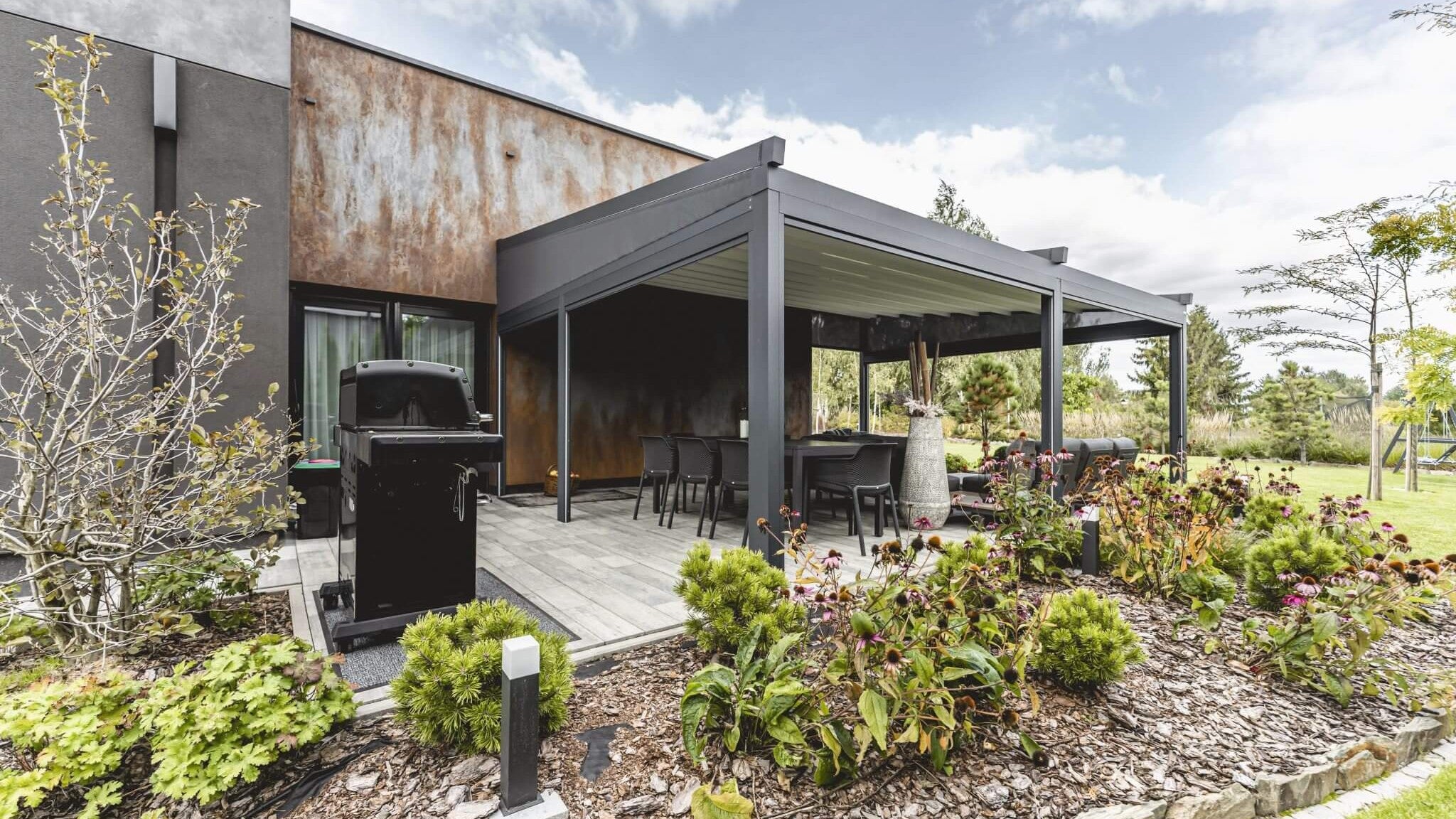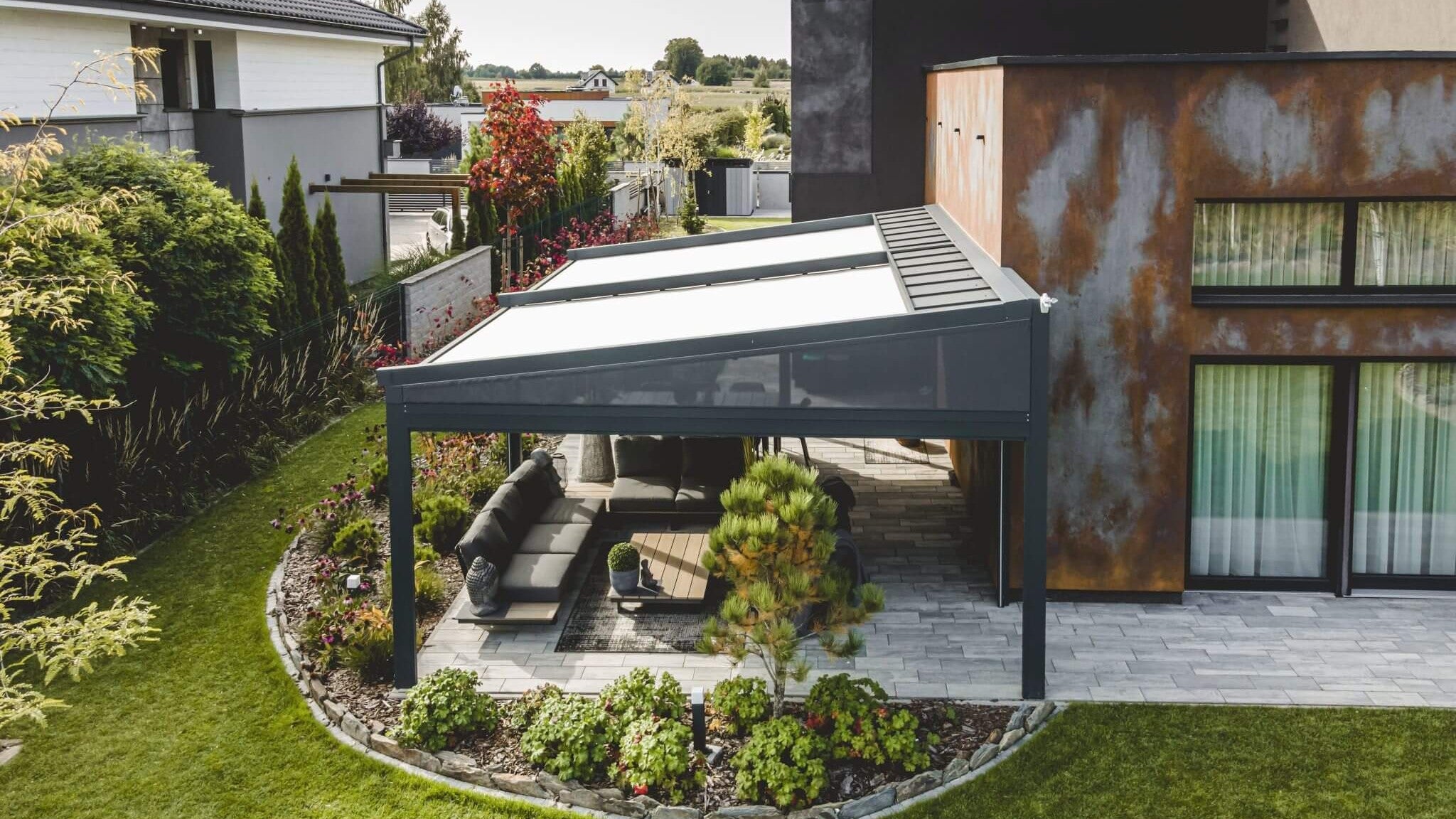 - Stabil konstruktion som kan utrustas med sidopaneler, inglasning och vertikalmarkiser