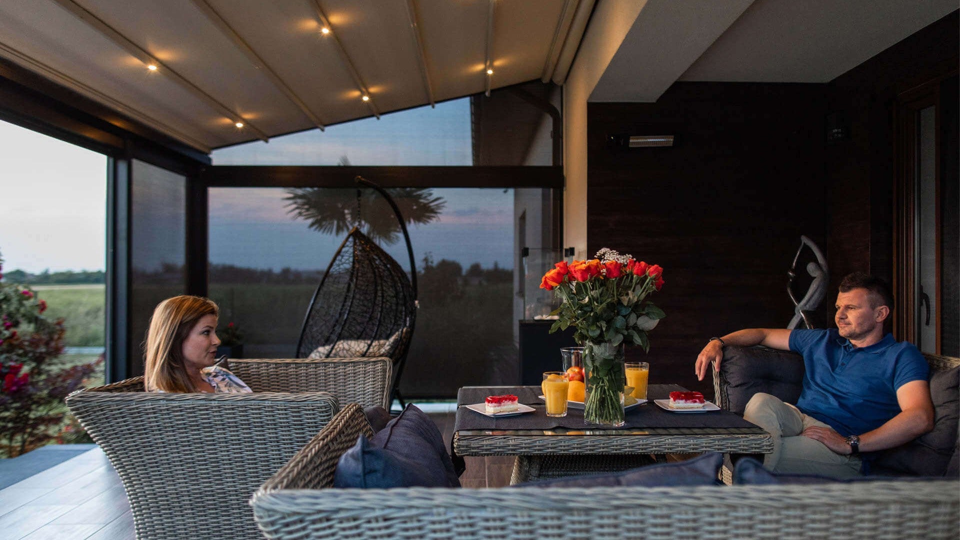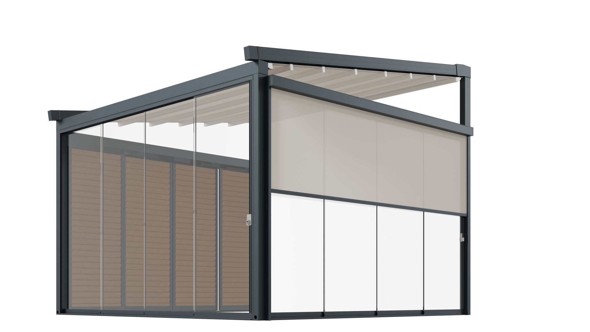 - Kan kombineras med sidopaneler, inglasning och vertikalmarkiser