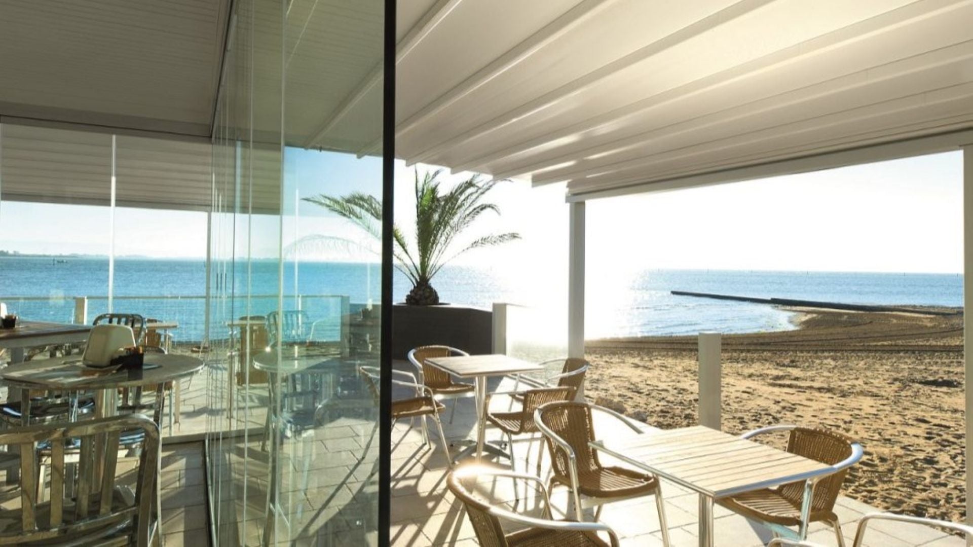 ✅ Infällbart tak i PVC – Ger full kontroll över ljus och skydd genom ett motoriserat system.