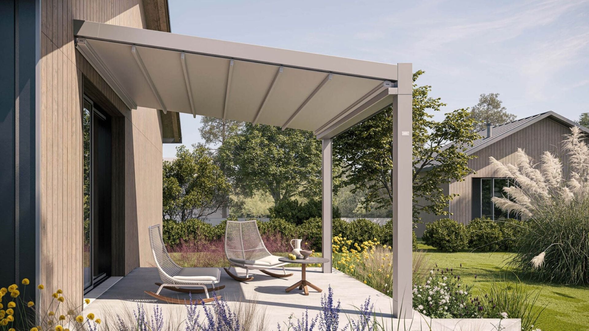 Modern pergola med skjutbart tak