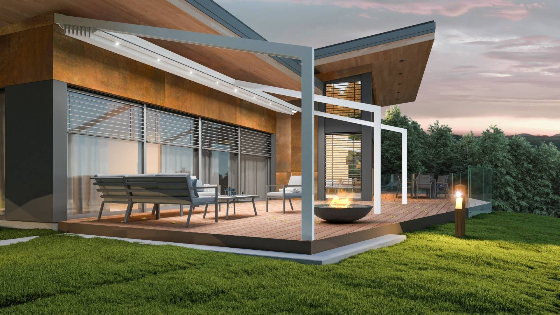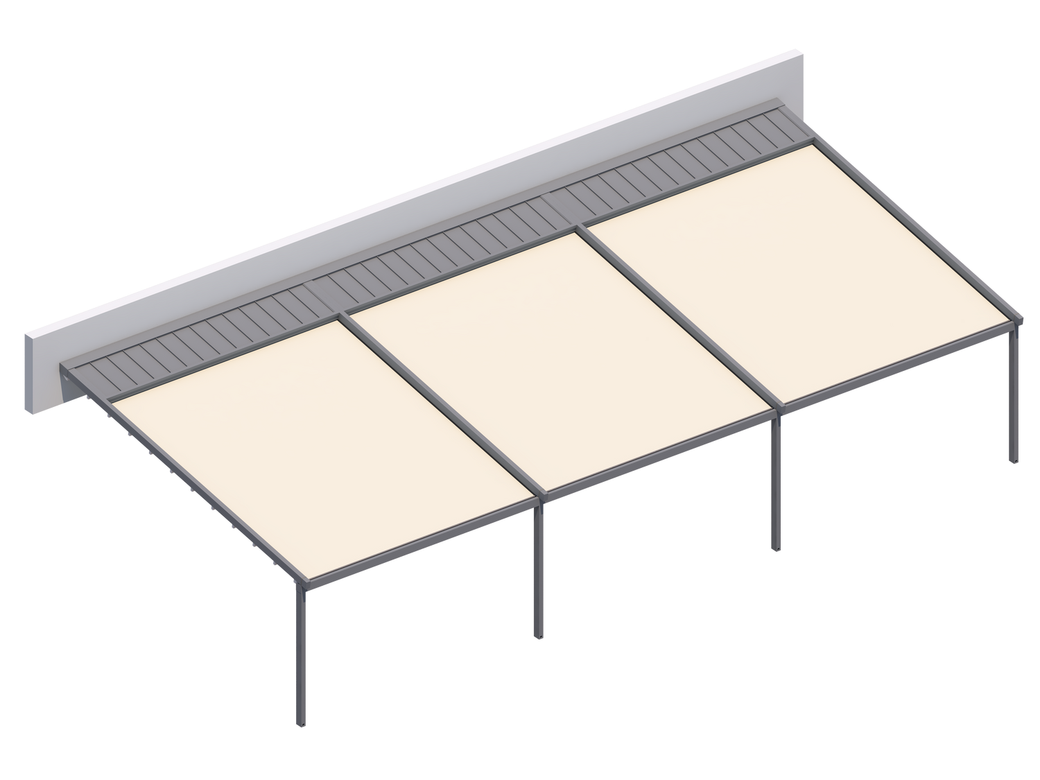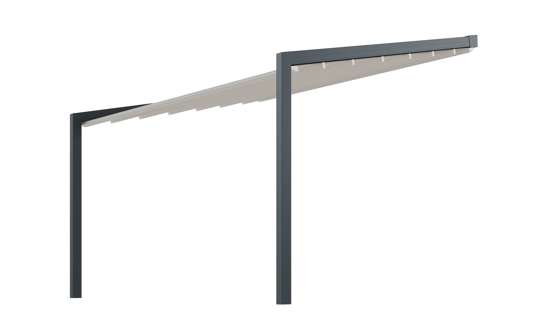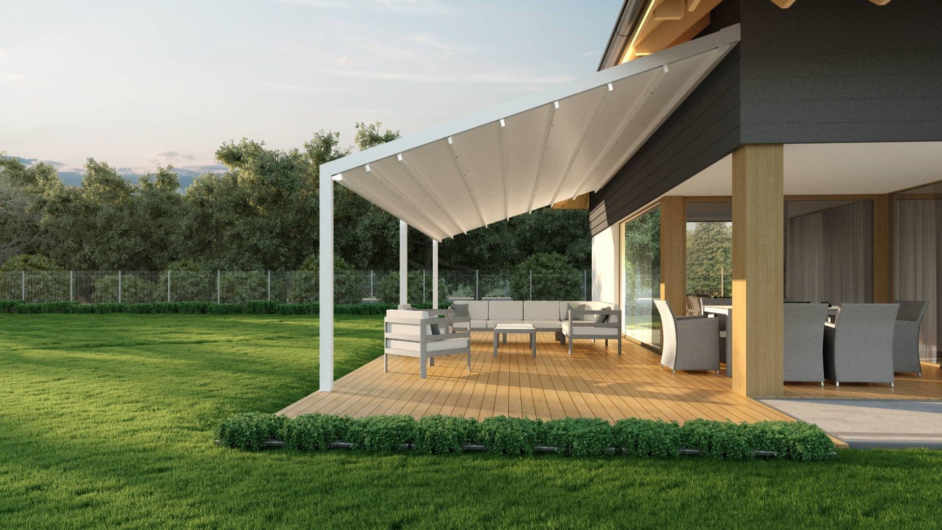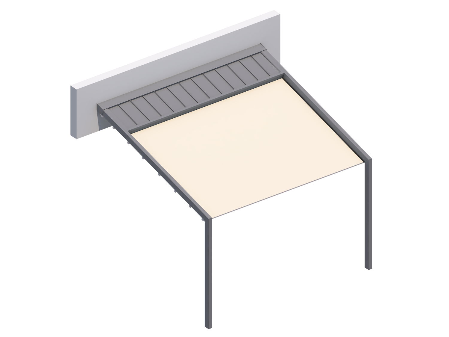 Light är en modern och minimalistisk pergola särskilt utformad för små till medelstora terrasser. Denna väggmonterade pergola erbjuder ett infällbart tak som ger skydd mot sol och regn samtidigt som den bibehåller en elegant och diskret estetik.