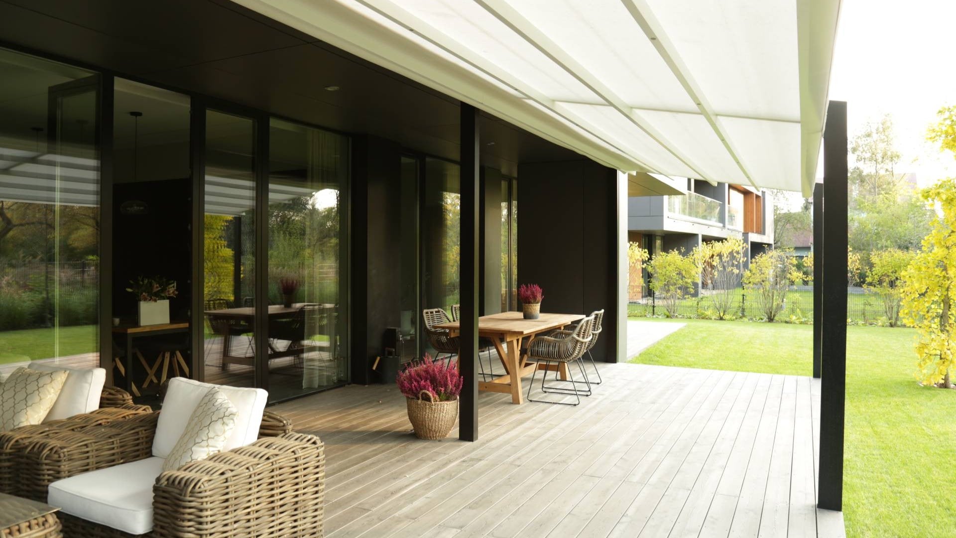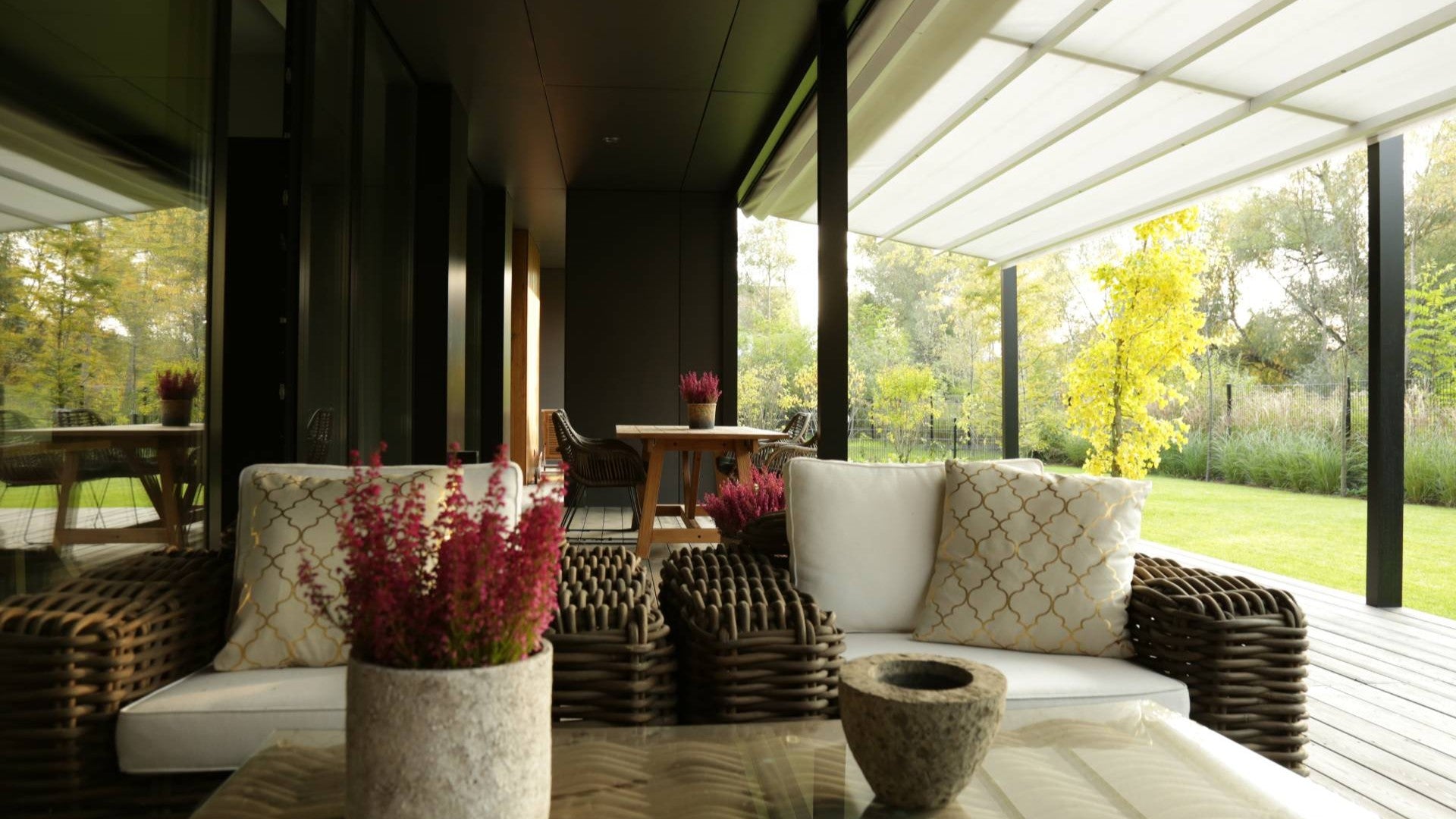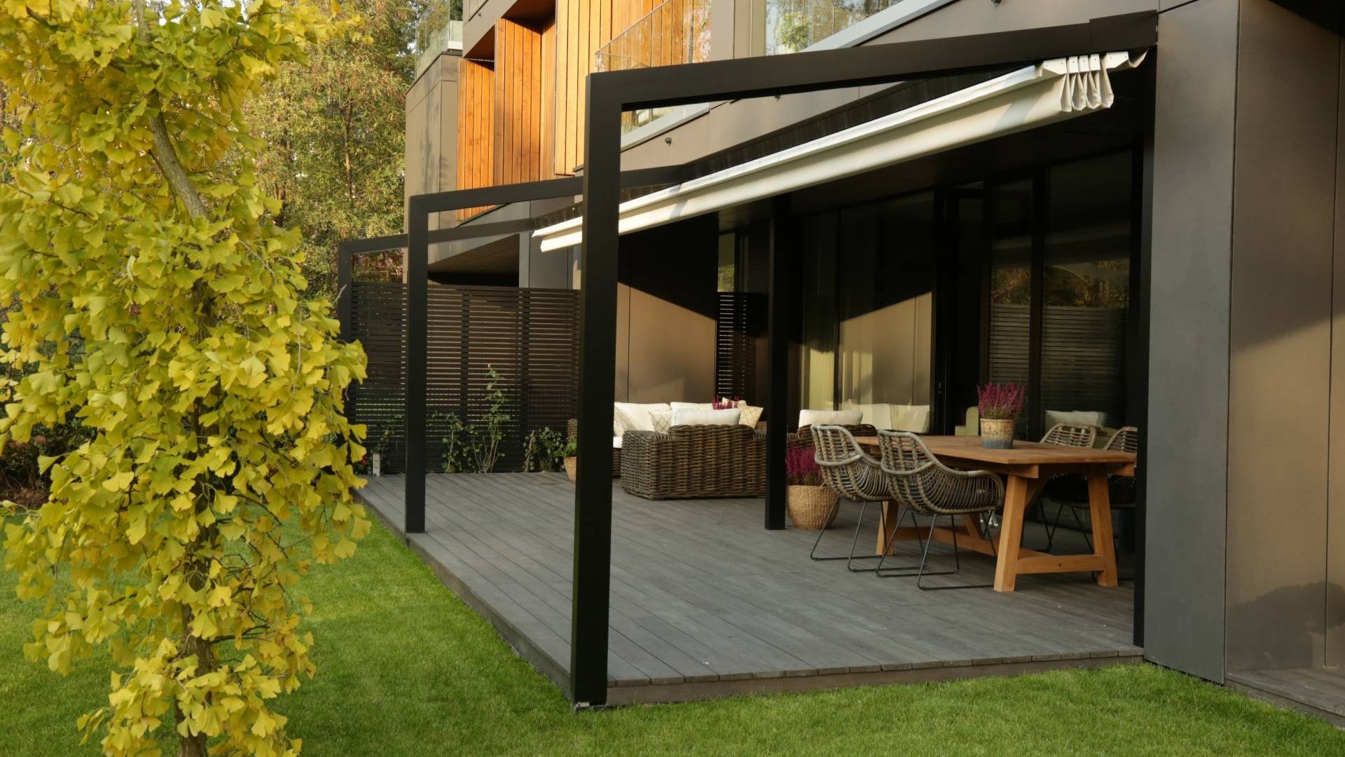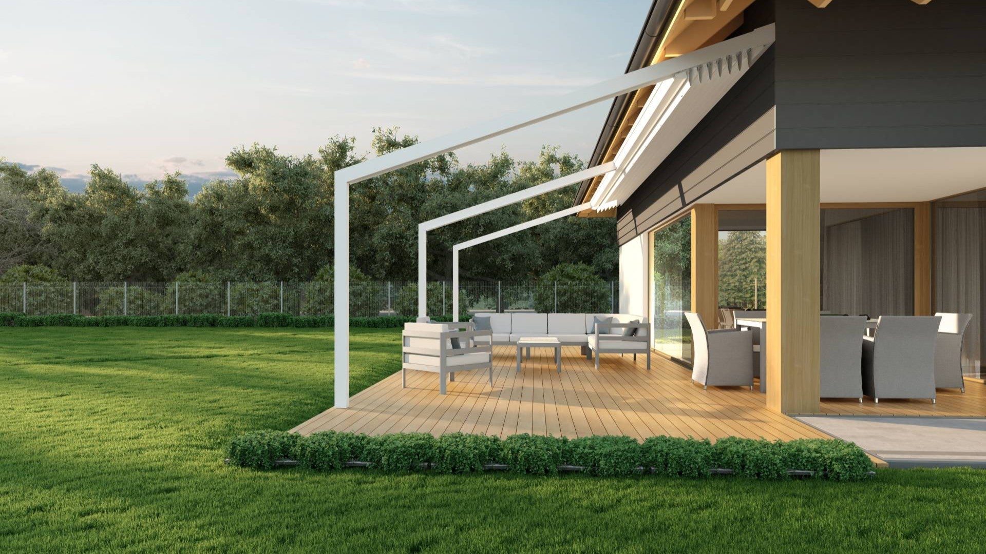 - Kan kombineras med sidopaneler, inglasning och vertikalmarkiser