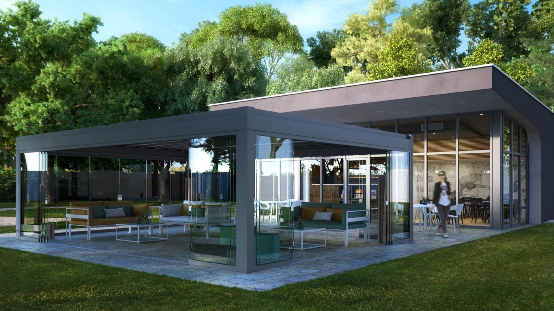 ✅ Infällbart tak i PVC – Ger full kontroll över ljus och skydd genom ett motoriserat system.