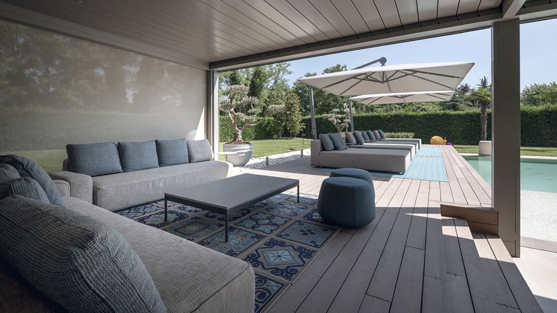 Total frihet att välja mellan sol, skugga eller fullständigt väderskydd.