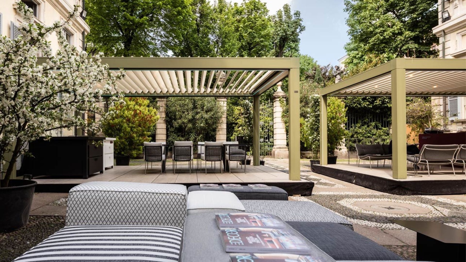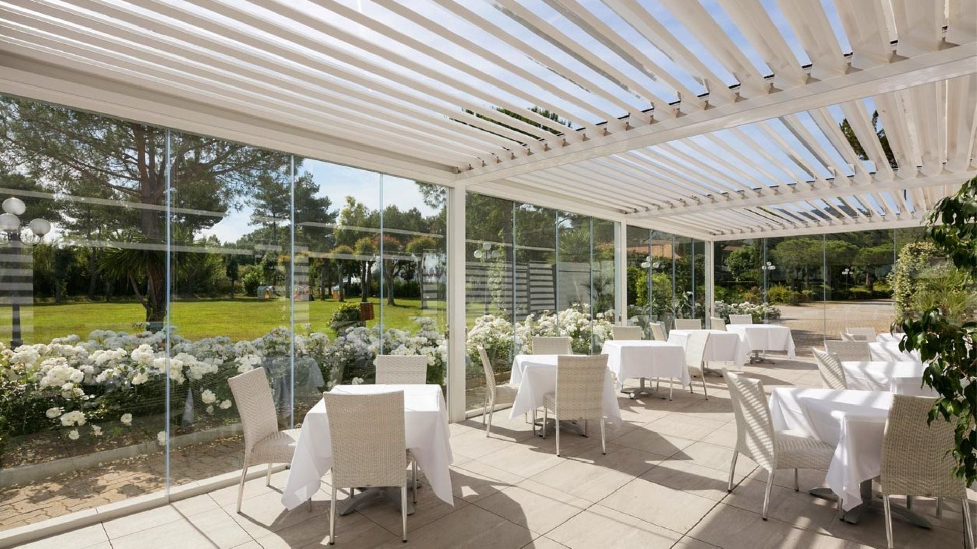 Syskonen Opera och Vision är bioklimatiska pergolor med justerbara aluminiumlameller designad för att ge maximal flexibilitet och kontroll över ljus och ventilering. Tack vare dess stilrena design och innovativa teknik passar de perfekt för både privata trädgårdar, hotell, restauranger och kommersiella utemiljöer.