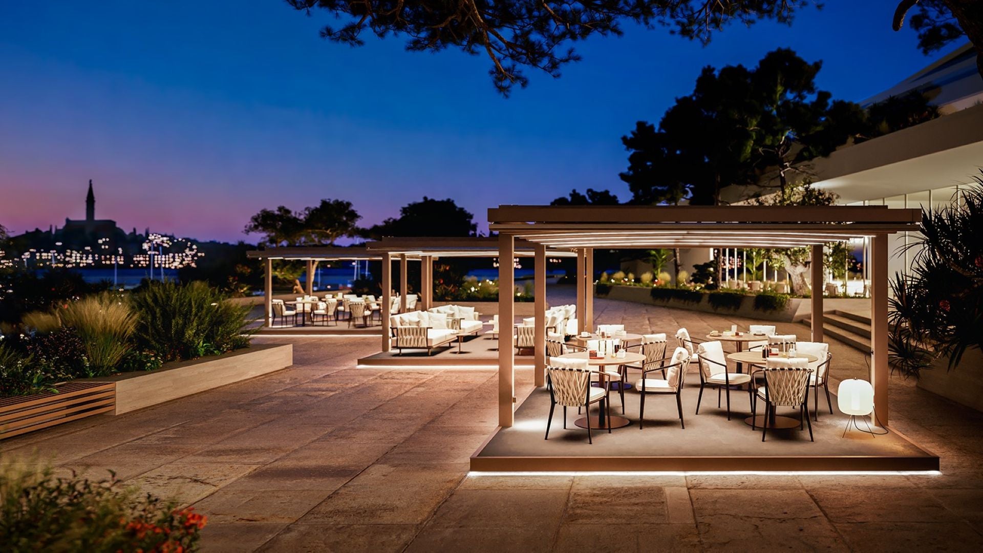 Integrerade ljuslister i ramen och pelarna för en elegant atmosfär på kvällen.