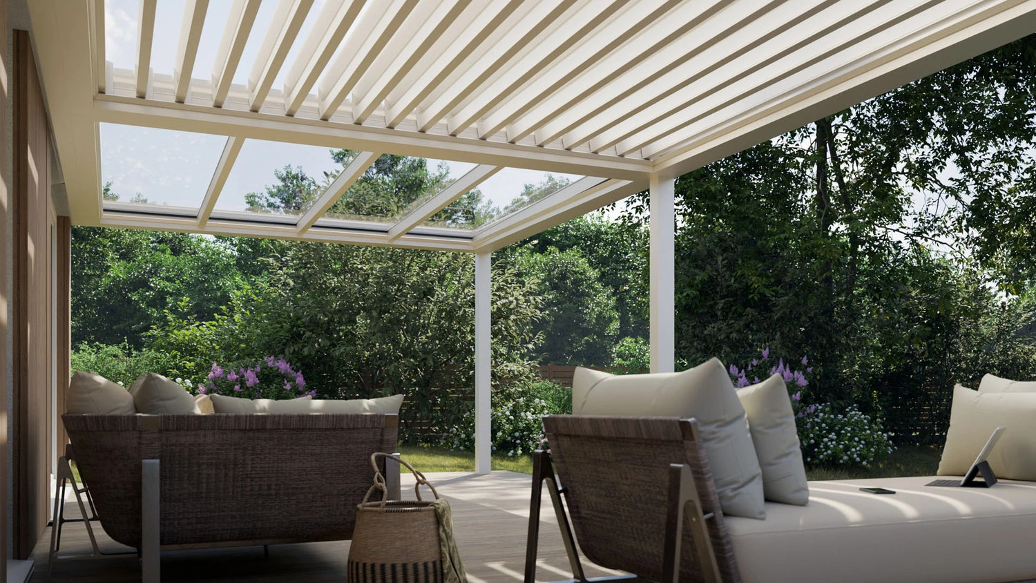 Både Technic New och Technic Pro kan väljas med hybrid tak. Hybrid tak innebär att du kan kombinera fast glastak på en sektion och vridbara lameller på en annan sektion.