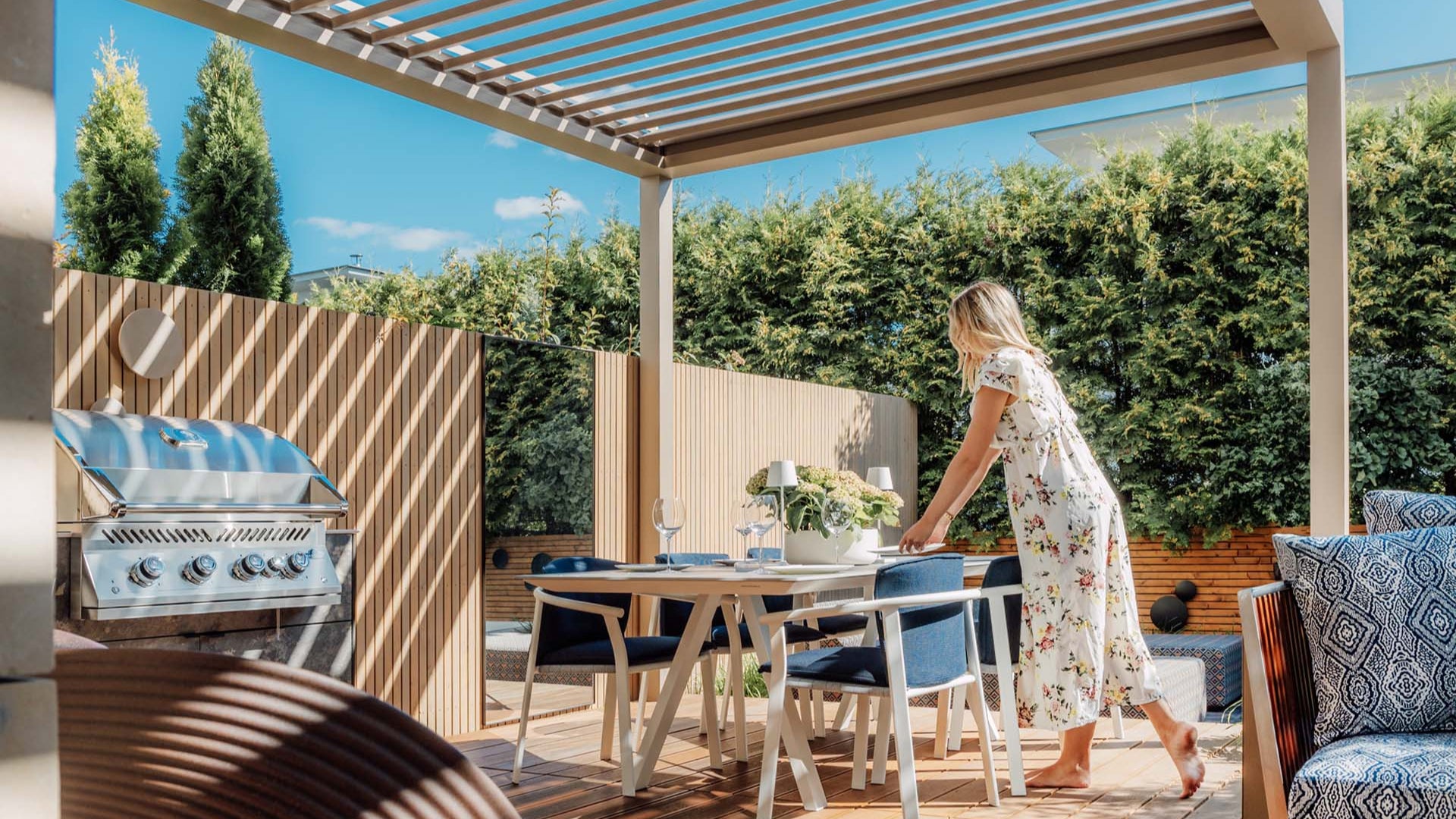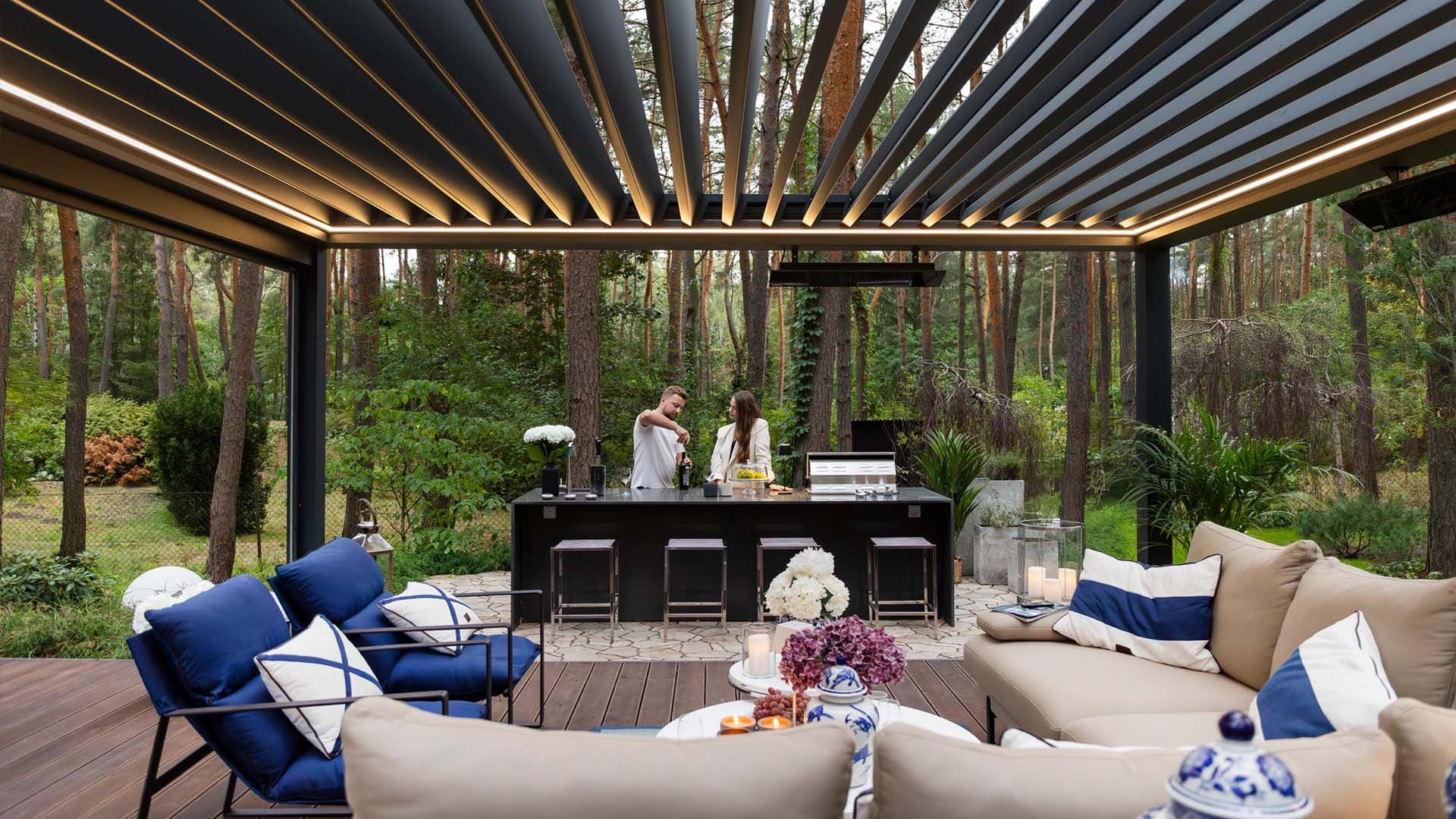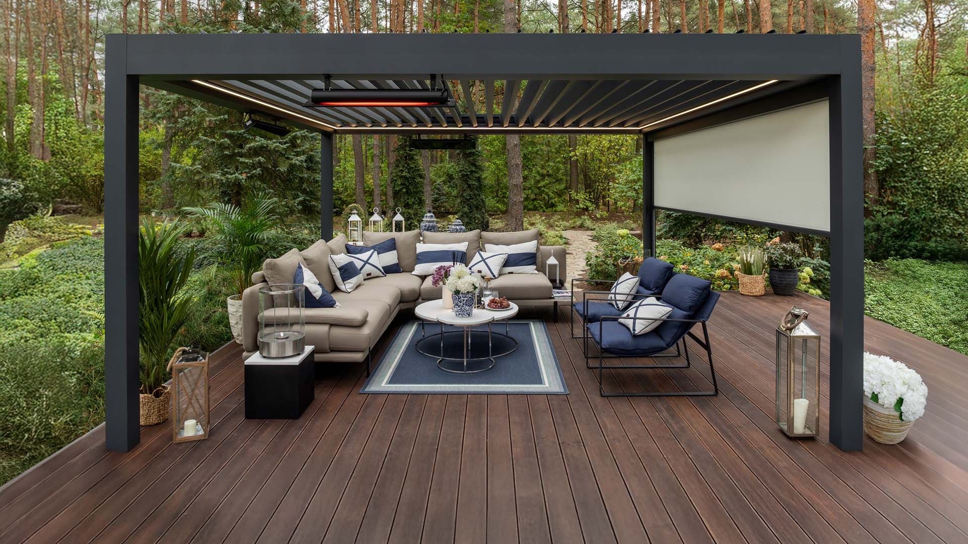 Technic NEW är en bioklimatisk pergola som förenar stilren arkitektur, väderbeständighet och smart funktionalitet. Med sina justerbara lameller och patenterade dräneringssystem erbjuder den en flexibel och skyddad utemiljö, perfekt för både privata och kommersiella installationer. Både Technic New och Technic Pro kan väljas med hybrid tak. Hybrid tak innebär att du kan kombinera fast glastak på en sektion och vridbara lameller på en annan sektion.