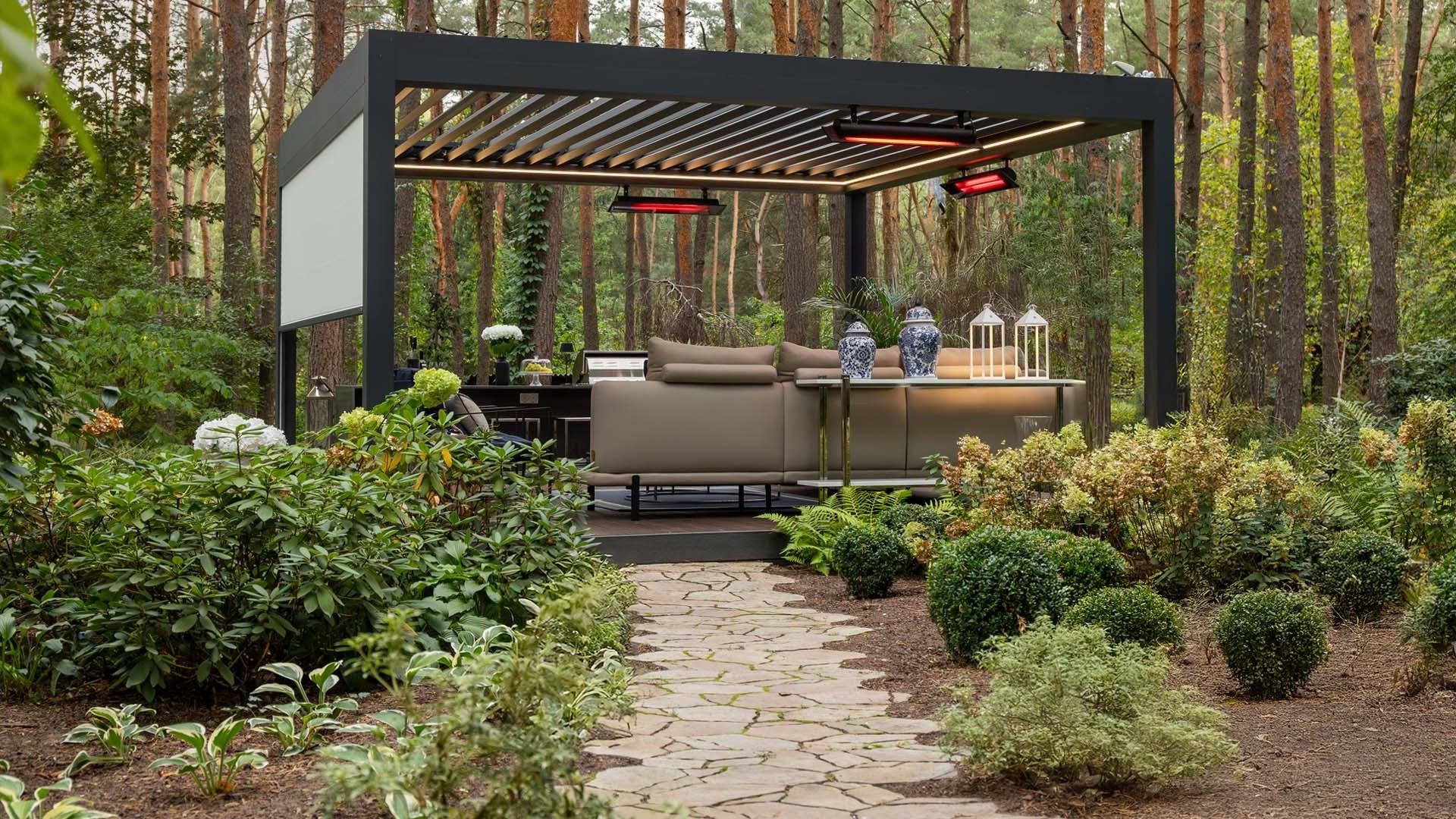 - Stabil konstruktion som kan utrustas med sidopaneler, inglasning och vertikalmarkiser