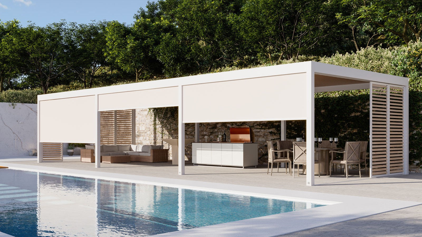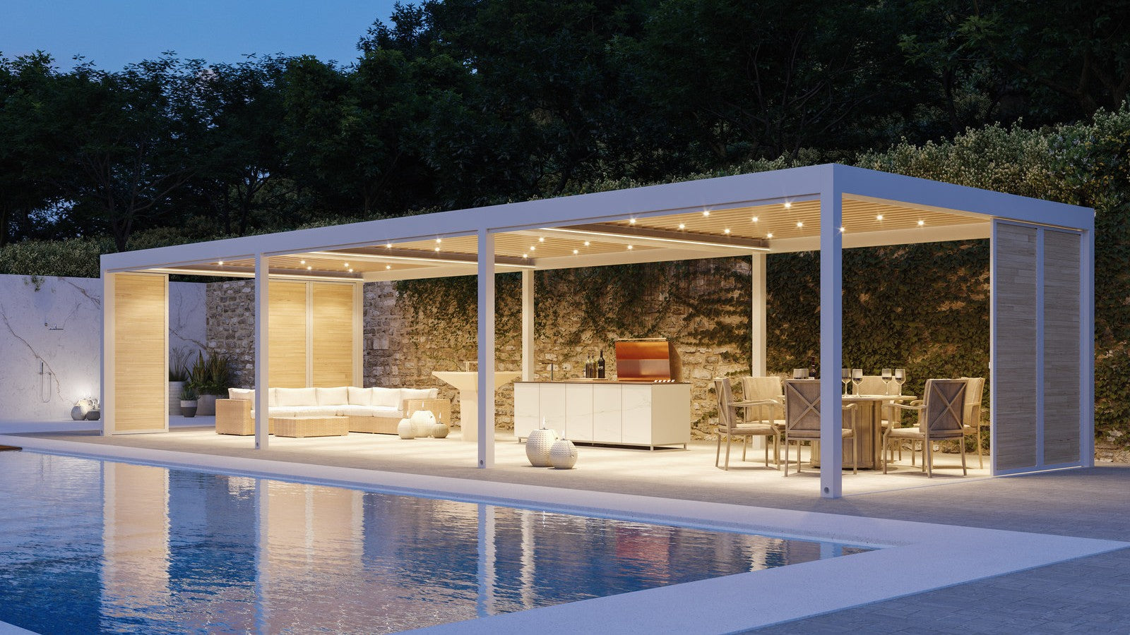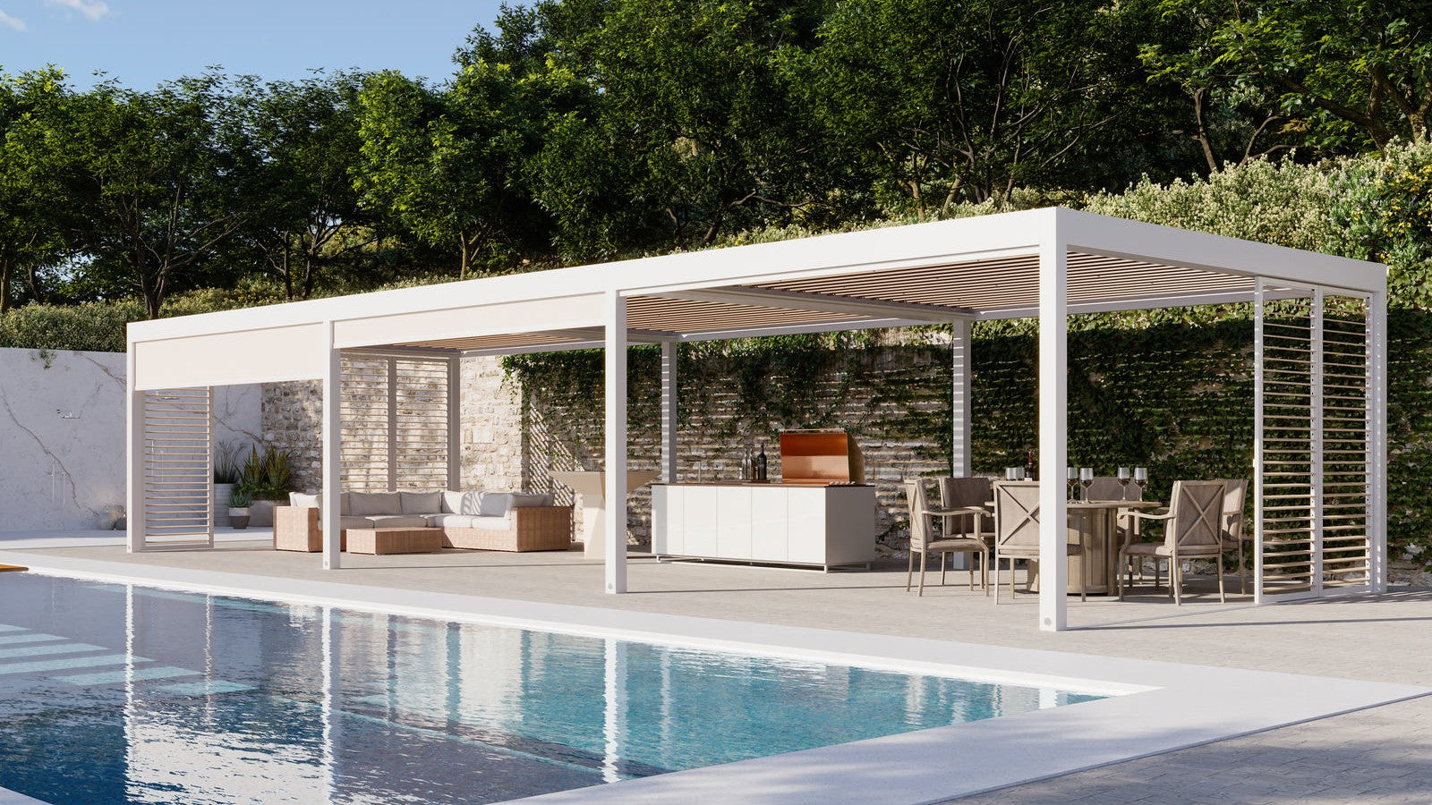 Technic PRO är en bioklimatisk pergola som kombinerar modern design, avancerad funktionalitet och hållbara material. Technic PRO särskiljs från andra modeller genom sina integrerade vertikalmarkiser. Med sina justerbara lameller, integrerade dräneringssystem och modulära expansionsmöjligheter är den det perfekta valet för både privata och kommersiella utomhusmiljöer. Både Technic PRO och Technic New kan väljas med hybrid tak. Hybrid tak innebär att du kan kombinera fast glastak på en sektion och vridbara lameller på en annan sektion.