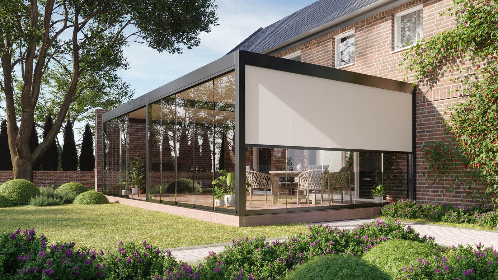 - Kan kombineras med sidopaneler, inglasning och vertikalmarkiser